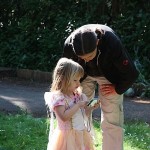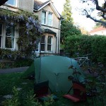 Nachdem wir in Bristol auf dem Caravan-Camping nicht willkommen waren, beschlossen wir im nahe gelegenen Park zu campen. Der Park schien DAS Naherholungsgebiet der Bristolers zu sein – sie joggen, picknicken, lassen Drachen steigen, absolvieren ihre Gruppentrainings mit Drill-Instructor (sehr witzig), sitzen einfach nur in ihren Autos oder führen ihre Hunde aus. Martin, einer der Hunde-Ausführer, bot uns an, in seinem Garten zu übernachten, da es unmöglich sei, in diesem Park zu campen. Das Angebot nahmen wir natürlich gerne an und fanden uns nach unserem Camping z’Nacht im Garten schon bald bei einem Glas Wein in der Küche der Familie wieder. Martin und Elane warnten uns vor, dass uns am nächsten Morgen wahrscheinlich die beiden 3-Jährigen Zwillinge Jamie und Heidi ziemlich bald wecken würden, weil sie sich vor Aufregung, ein Zelt im Garten zu haben, nur schlecht würden zurückhalten können. Um 7.30 Uhr wurden wir dann von einer Tasse Tee und zwei ziemlich scheuen Kindern geweckt. Schon bald jedoch präsentierten uns die Zwei all ihre Spielsachen und plauderten fröhlich drauflos…