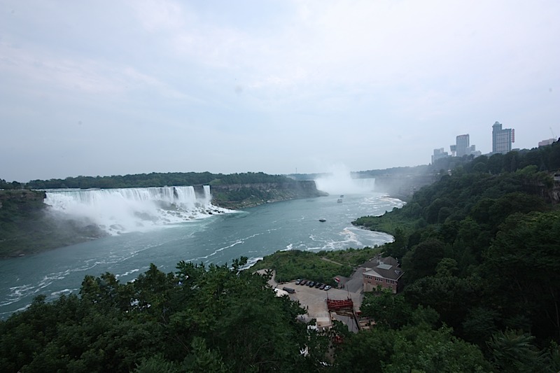 Die Niagara-Fälle waren mit ihrer Höhe und Breite wirklich sehr beeindruckend. Der Wasserfall strotzt vor Kraft, der Fluss davor strahlt eine trügerische Ruhe aus. Weniger toll fanden wir die riesigen Hotels, die Souvenir- und Spielstände – die totale Vermarktung!!