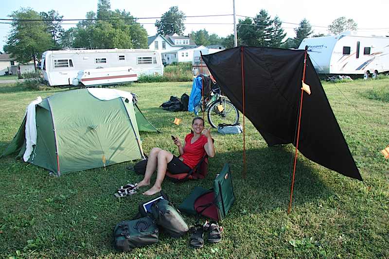 Die Route führte uns auf dem Waterfront-Trail entlang dem Lake Ontario zu den Niagara-Fällen. Teilweise auf Velowegen die so breit waren, wie es in England nicht mal die normalen Strassen sind, durch Wohngegenden die uns aus „Desperate Housewives“ bekannt vorkamen und entlang einer etwas anderen, flachen Weinstrasse ;-). Die erste Nacht durften wir im Garten einer netten Kanadierin verbringen, die uns auch gleich ihre Küche für Nachtessen und Frühstück zur Verfügung stellte – ein sehr gelungener Start.
