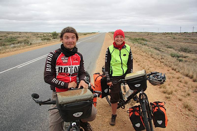 Durch die Weiten des Outbacks entdecken wir in der Ferne zwei Fahrradfahrer – so ziemlich die Ersten in ganz Australien. Ela und Tobi aus Dresden kämpften sich gerade unermüdlich gegen den Wind.
