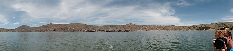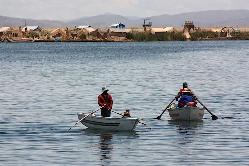 Um auch mal was von der schönen Landschaft mitzubekommen, fuhren wir anschliessend tagsüber mit den Bus nach Puno! Puno liegt am Lago Titicaca und ist bekannt für die schwimmenden Inseln „Uros“! Noch immer ist ein Teil dieser Inseln bewohnt, doch leben die Bewohner heute hauptsächlich vom Tourismus. Nebenbei: die Peruaner sagen „Titi“ für Peru und „caca“ für Bolivien… der See erstreckt sich über die Landesgrenze ;-). Natürlich shipperten auch wir zu den Inseln, liessen uns deren Bauweise erklären und wurden mit den traditionellen „Strohbooten“ von Insel zu Insel gerudert.